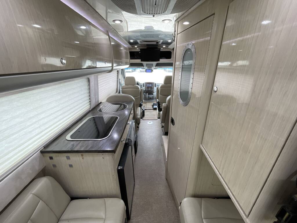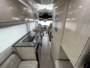 At just 23 feet long, the Interstate combines nimble handling with residential-grade comfort, making it ideal for two travelers who value flexibility without compromise. The twin-bed configuration provides a versatile setup for both lounging and sleeping, while high-end finishes, quality cabinetry, and precision fit define every detail.