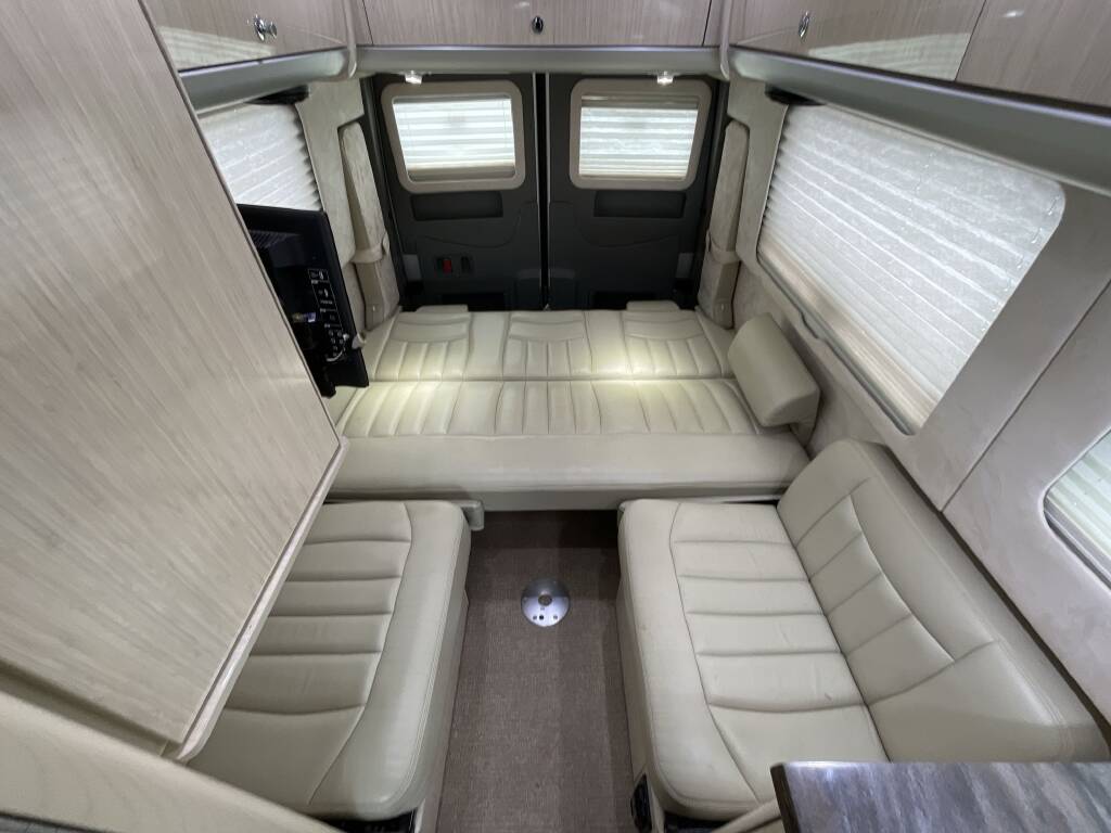 Twin rear beds convert into a full-width lounging area