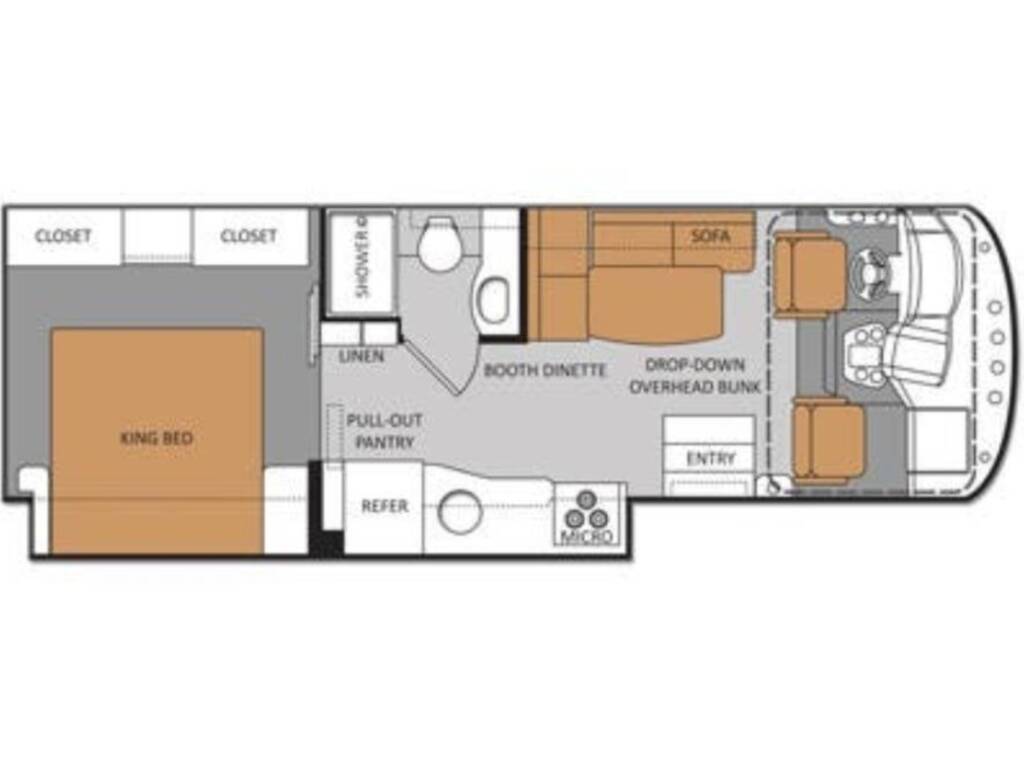 Sleeping Setup: RV King Bed + Convertible Sofa/Dinette