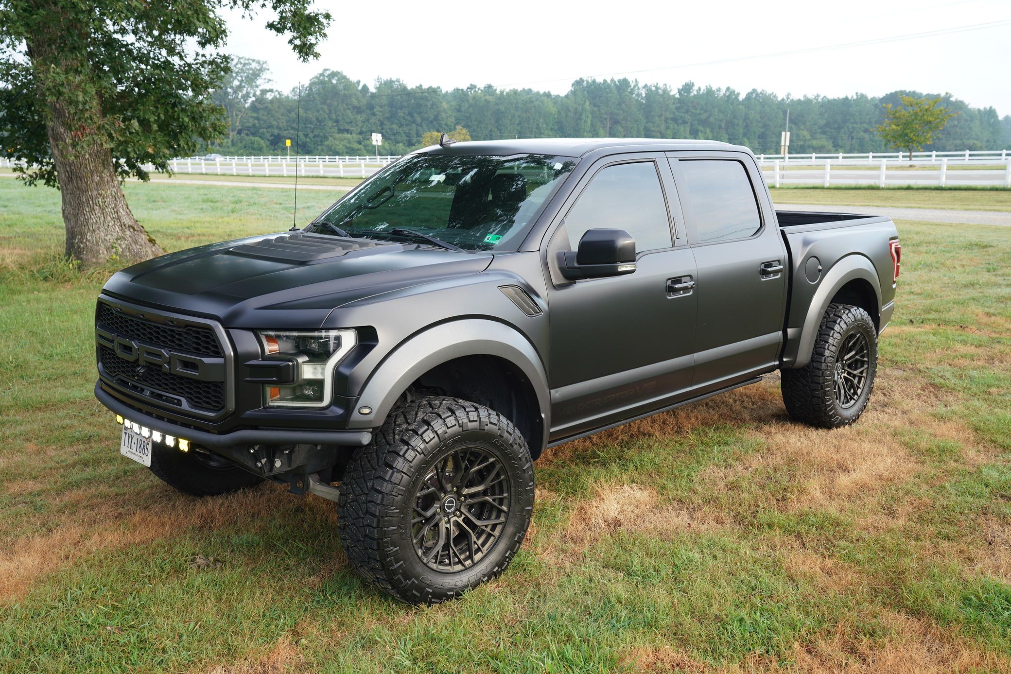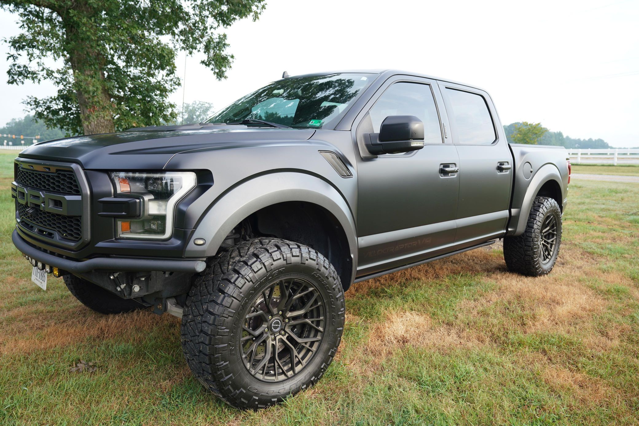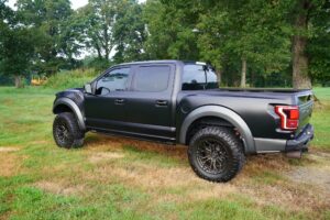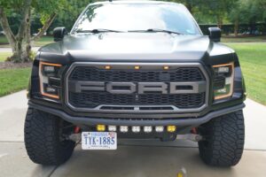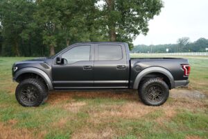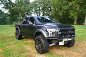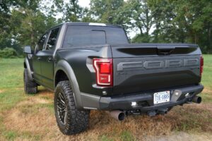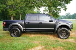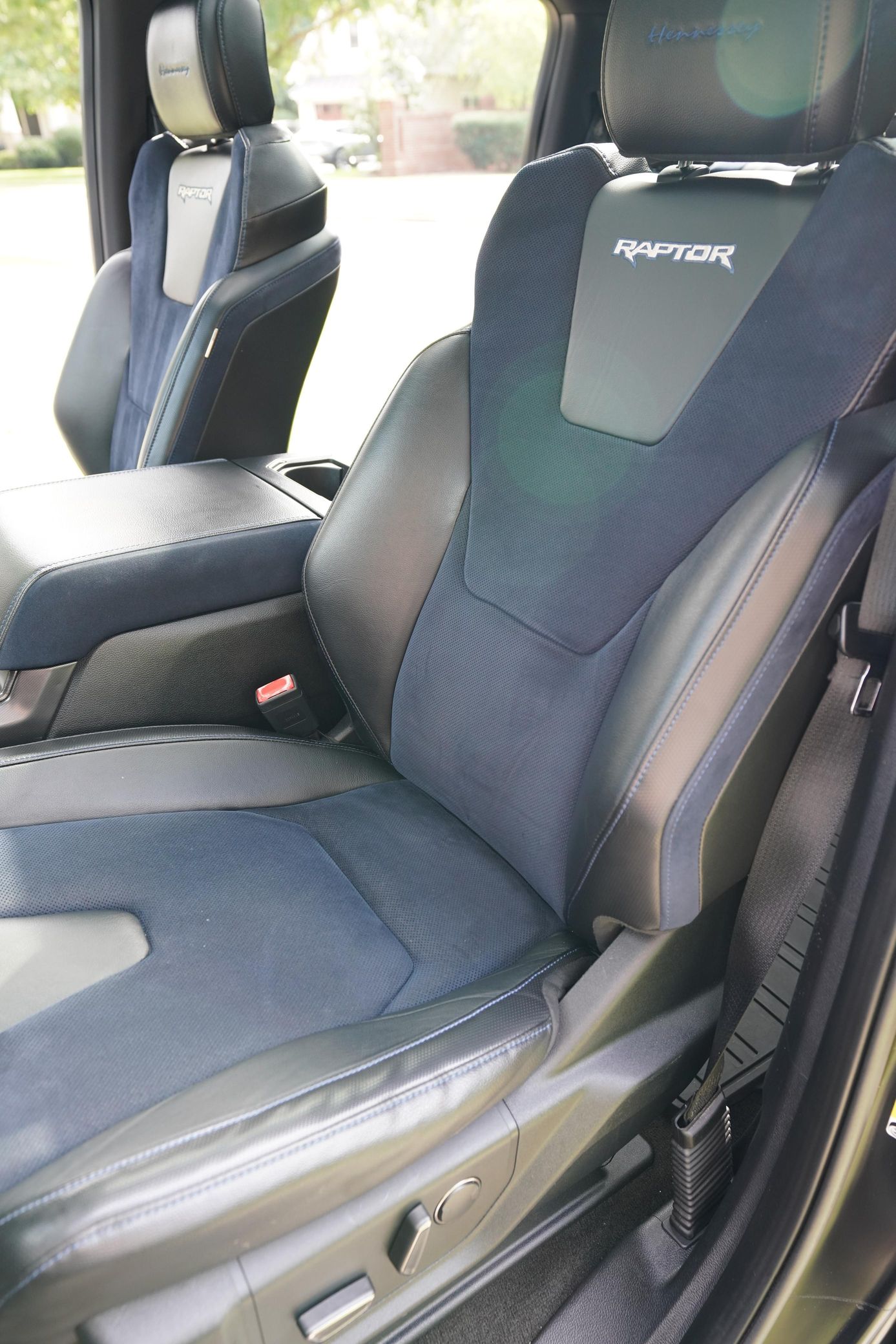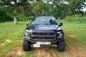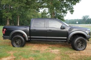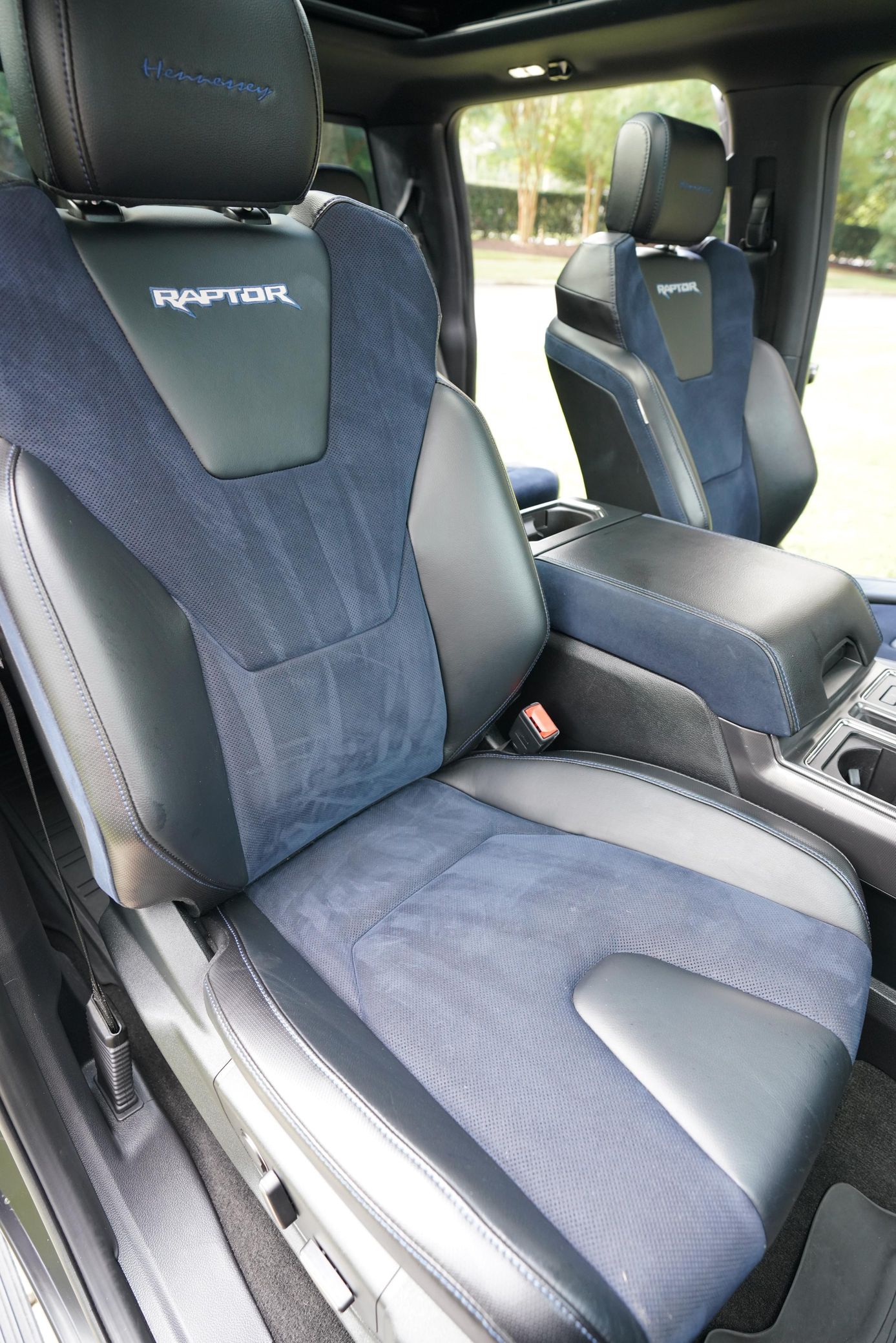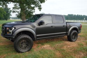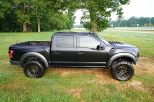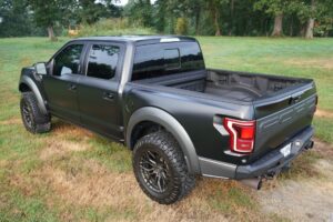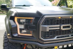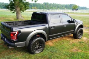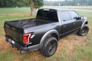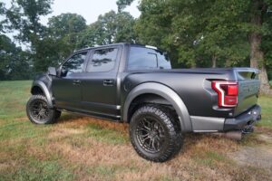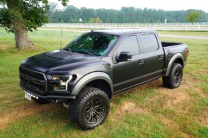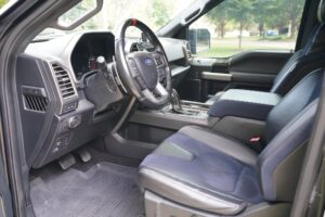This 2019 Ford F-150 Raptor Hennessey VelociRaptor V8 is an extreme, high-performance take on America’s best-selling pickup, finished in Agate Black with a satin black XPEL wrap and a black-and-blue Recaro interior.