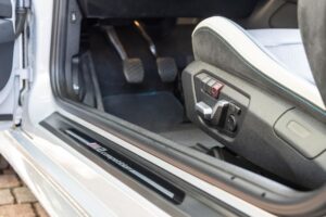 Finished in Hockenheim Silver Metallic and complemented by a Silver and Black interior, this example has traveled only 4,800 miles and carries a clean Florida title. It features BMW’s sought-after Special Content Package and a host of tasteful upgrades, including an Akrapovič cat-back exhaust, Burger Motorsports intake, and M Performance carbon fiber exterior components.