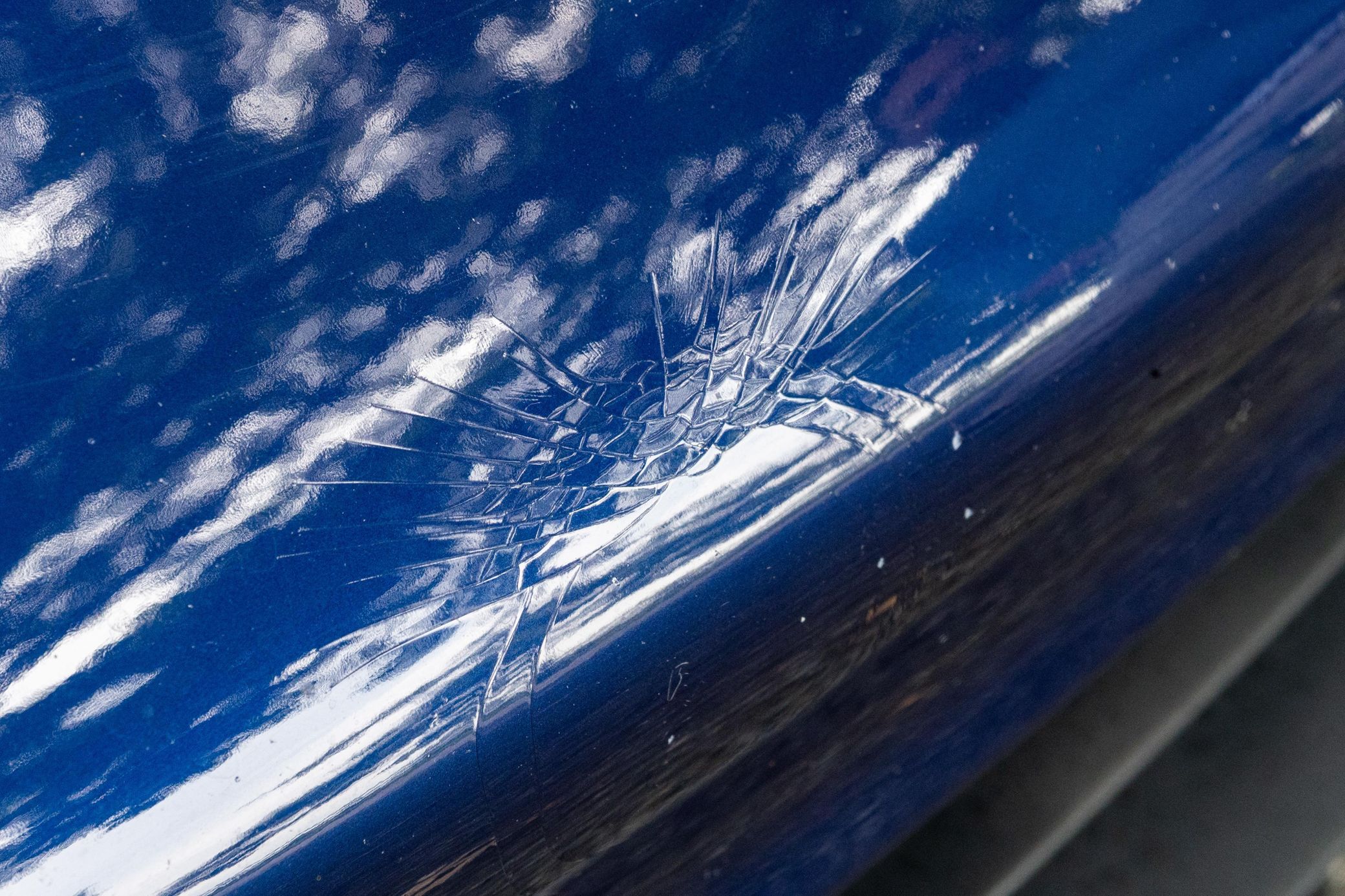 Cracked paint and scratches on front bumper