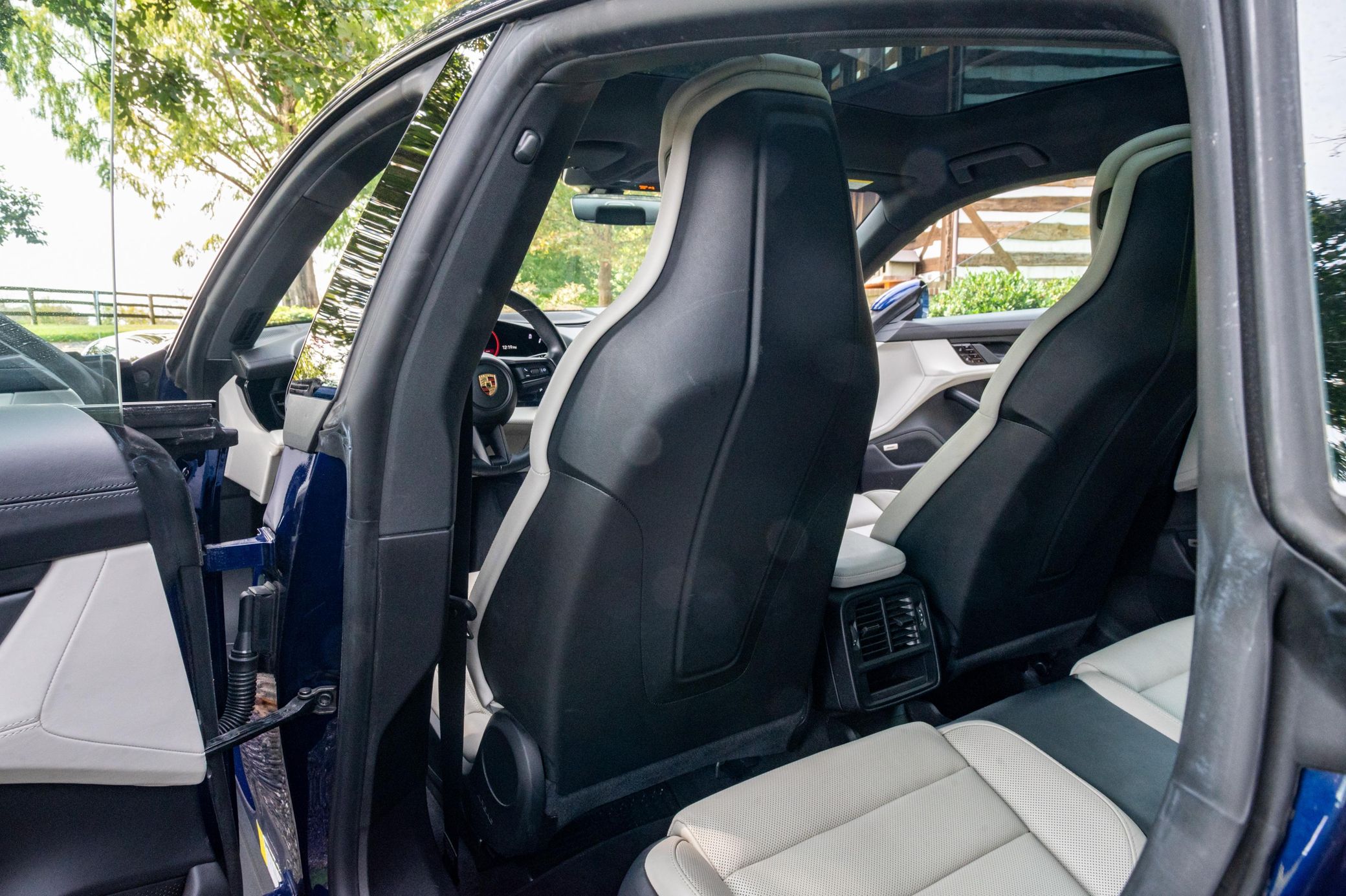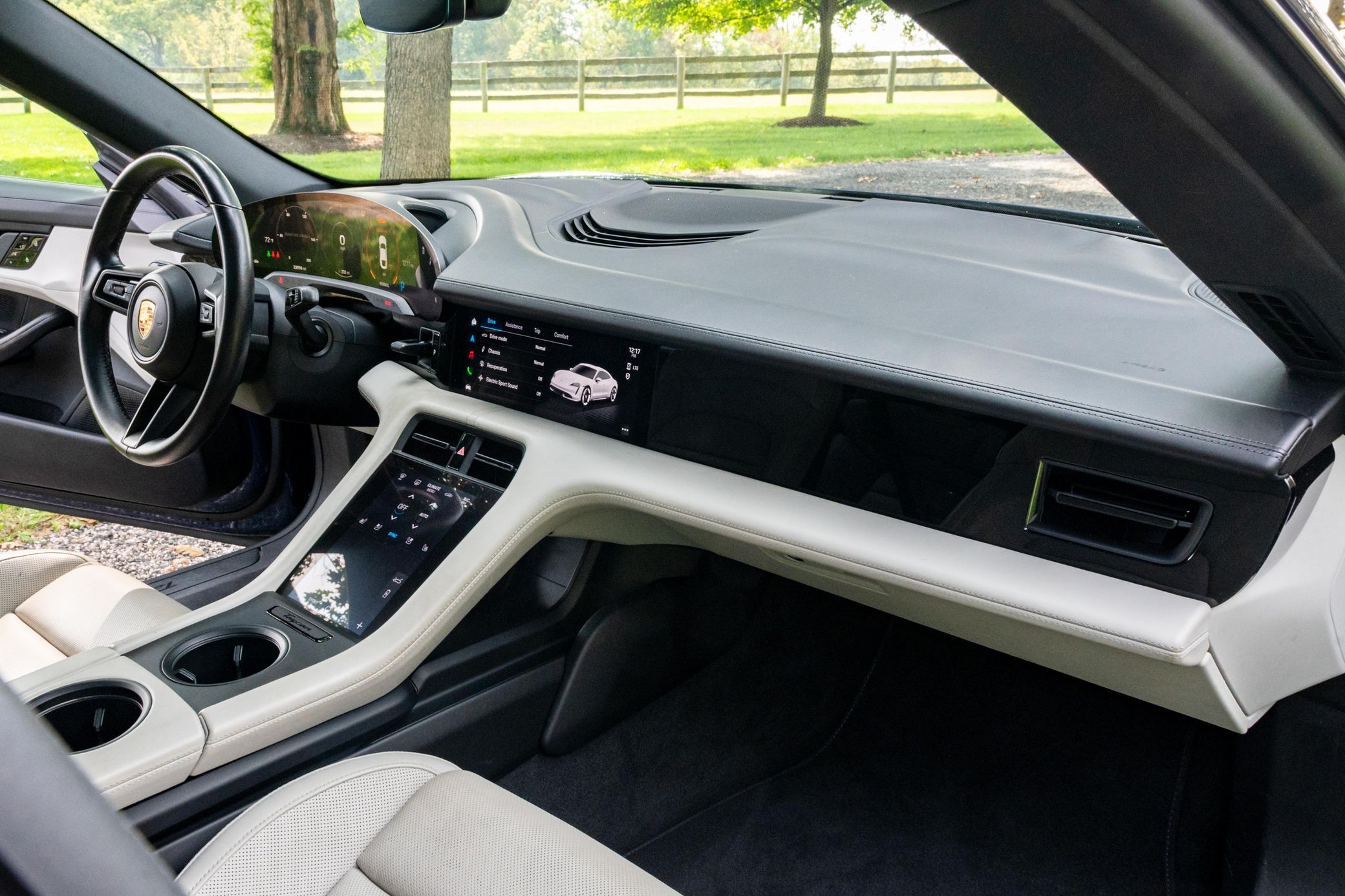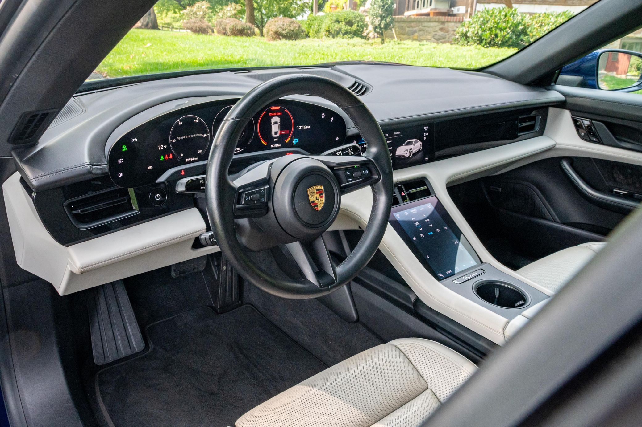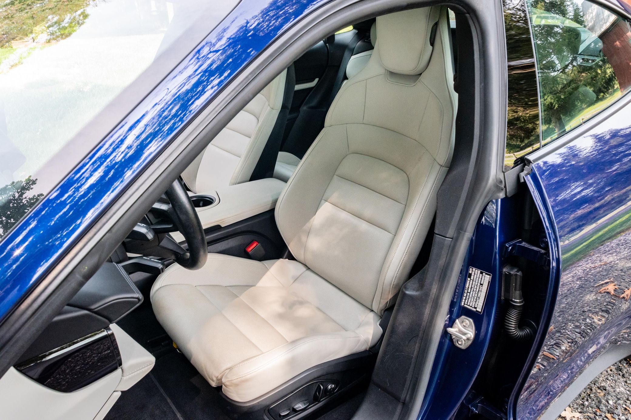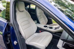 Equipped with the Premium Package, this Taycan features 20-inch Taycan Turbo Aero wheels, LED headlights with Porsche Dynamic Light System (PDLS), heated and ventilated front seats, and a Bose surround sound system. The seller reports no aftermarket modifications.