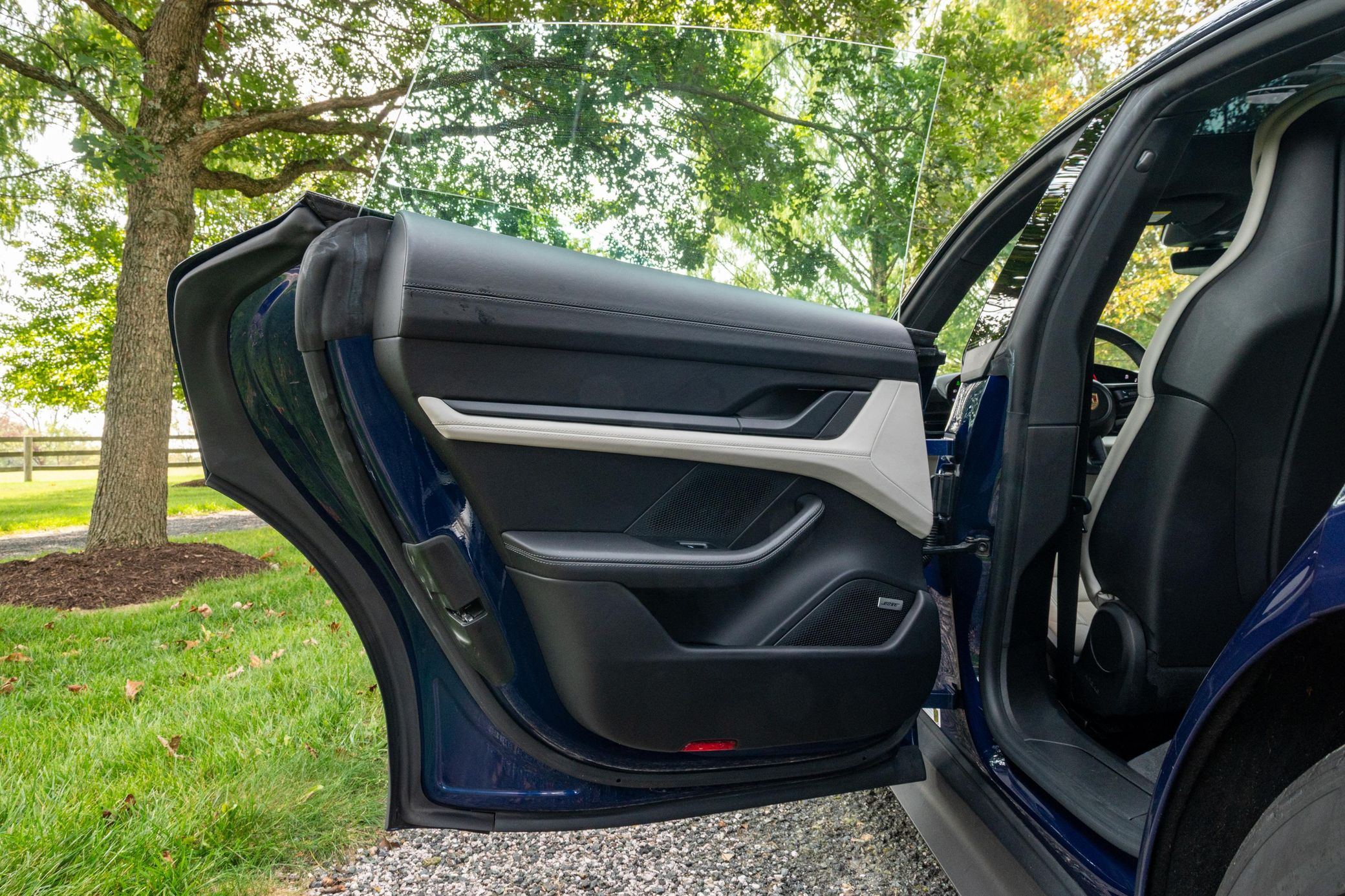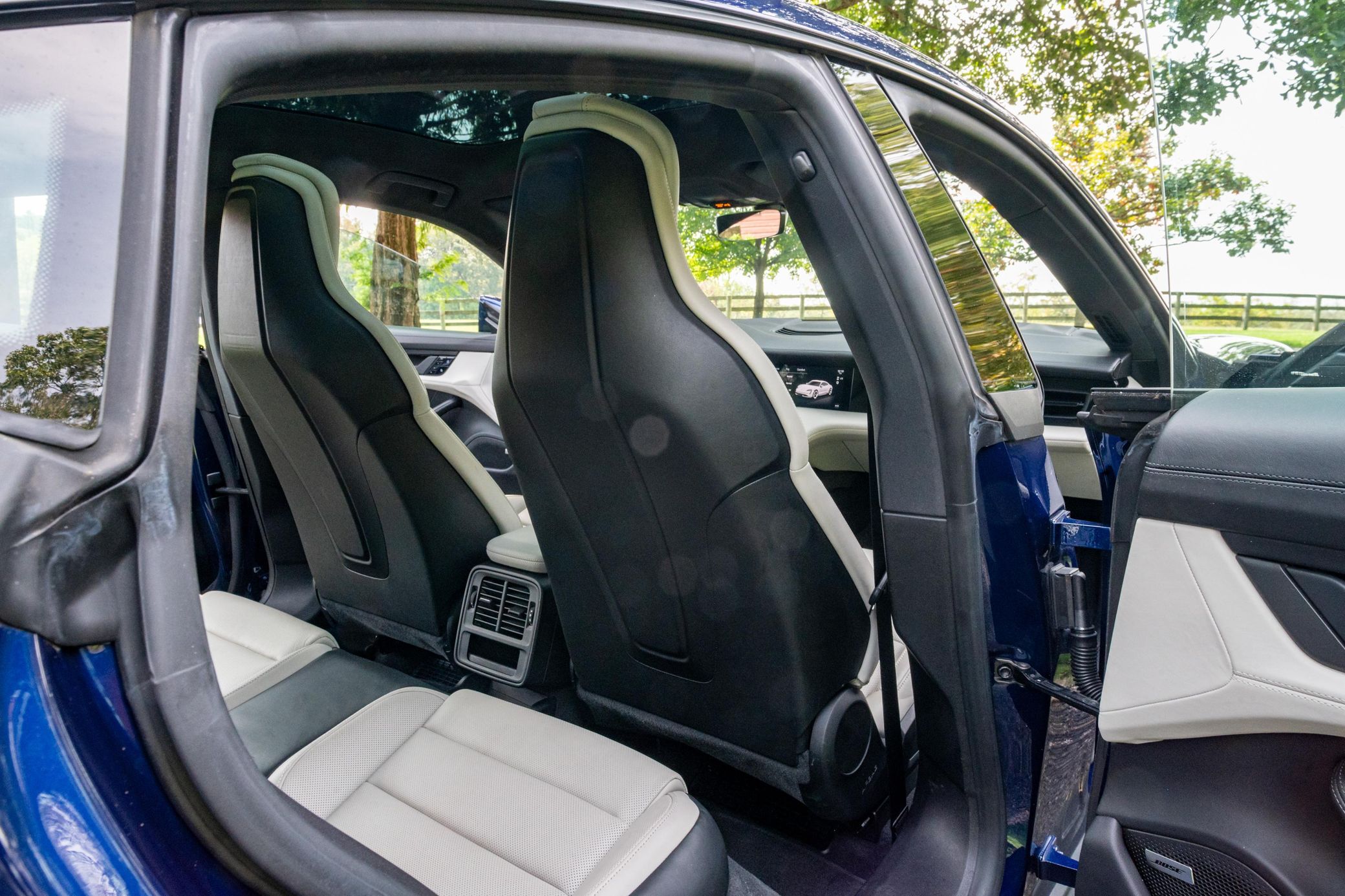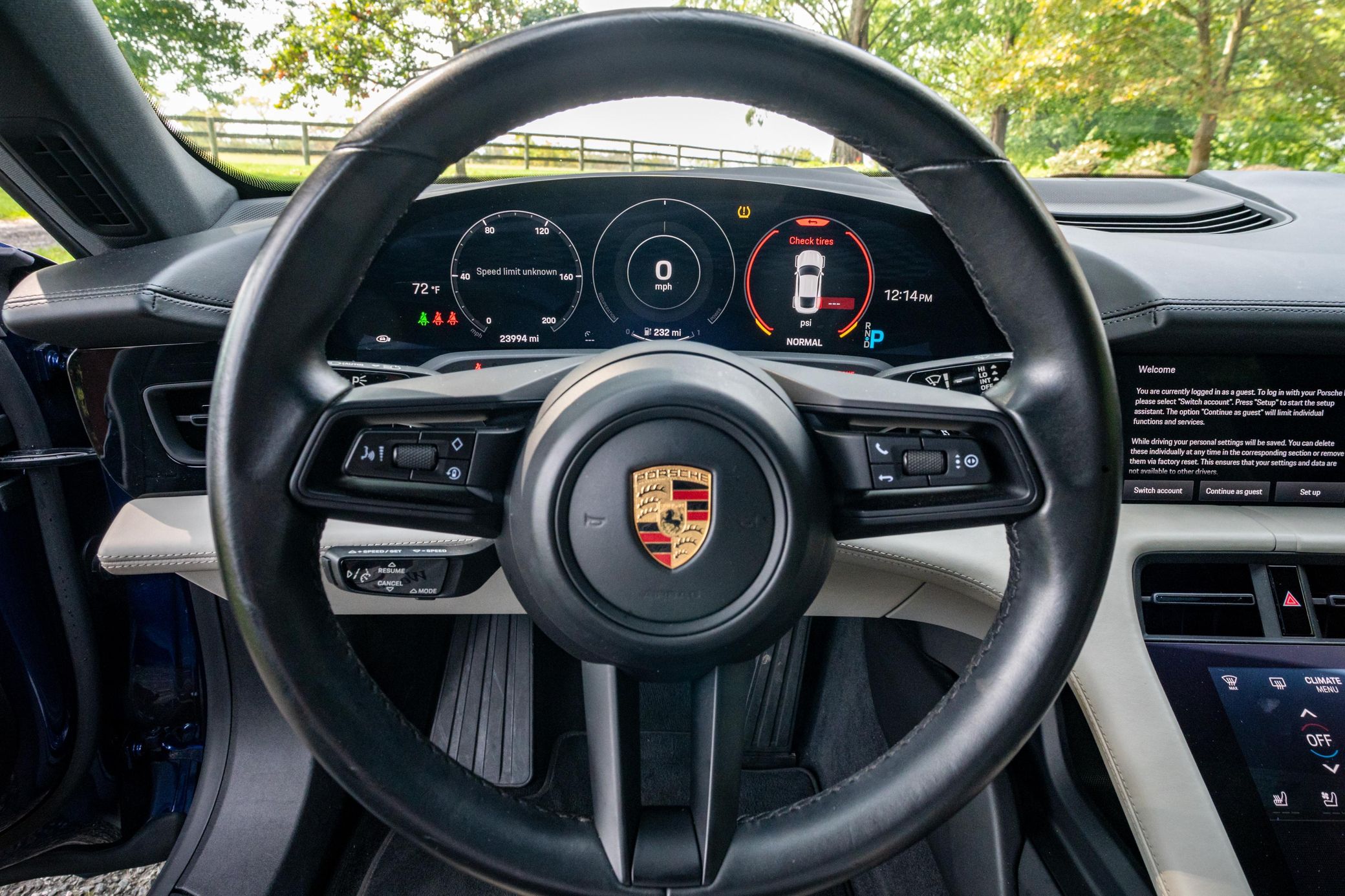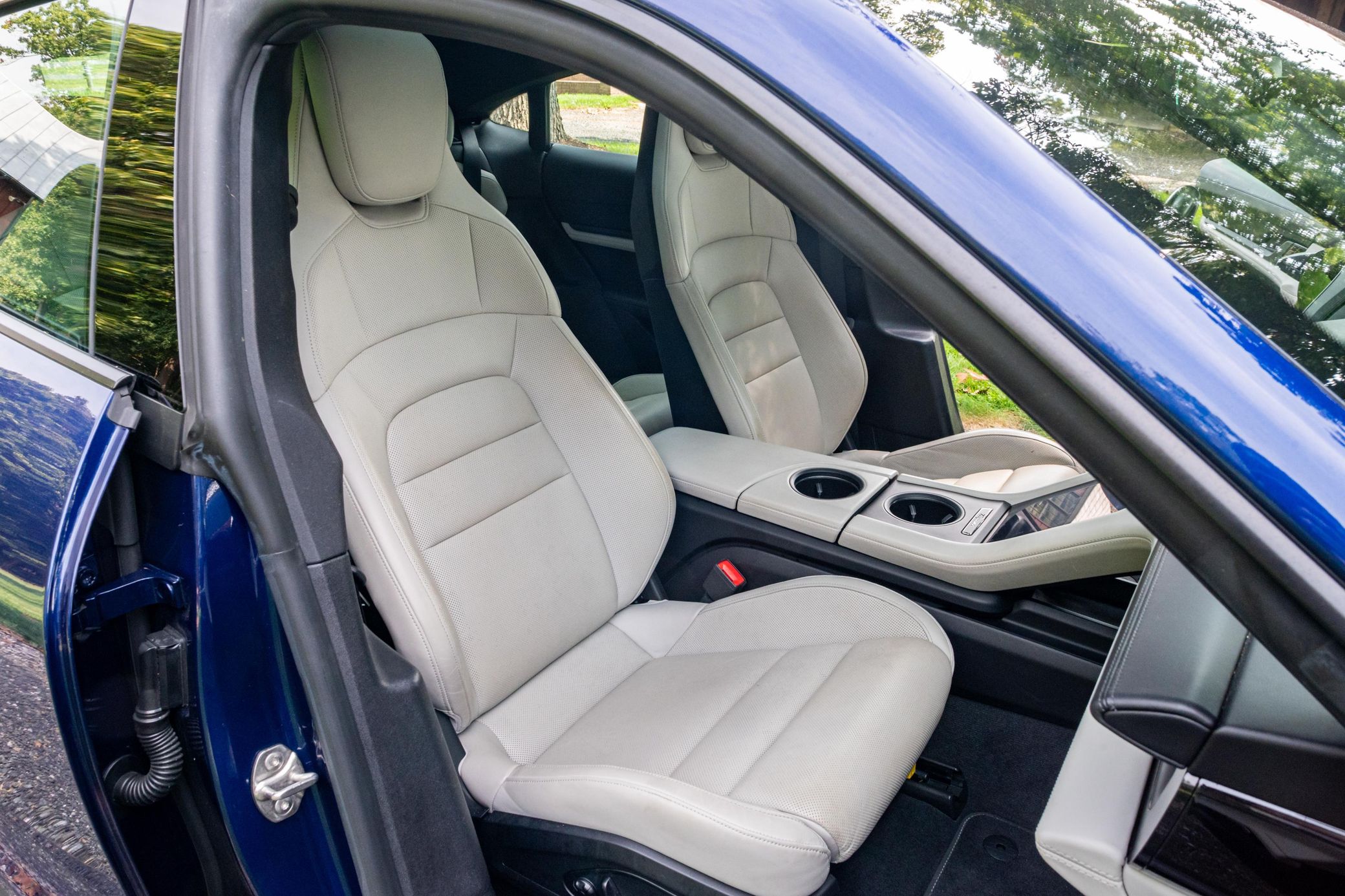 Equipped with the Premium Package, this Taycan features 20-inch Taycan Turbo Aero wheels, LED headlights with Porsche Dynamic Light System (PDLS), heated and ventilated front seats, and a Bose surround sound system. The seller reports no aftermarket modifications.
