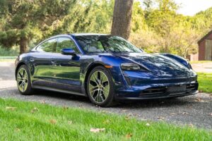 Introduced in 2020, the Taycan represents Porsche’s first fully electric production car. It showcases Porsche’s performance-driven approach to EVs, featuring an 800-volt electrical system that enables ultra-fast charging and a 2-speed transmission for instant acceleration and improved high-speed efficiency.