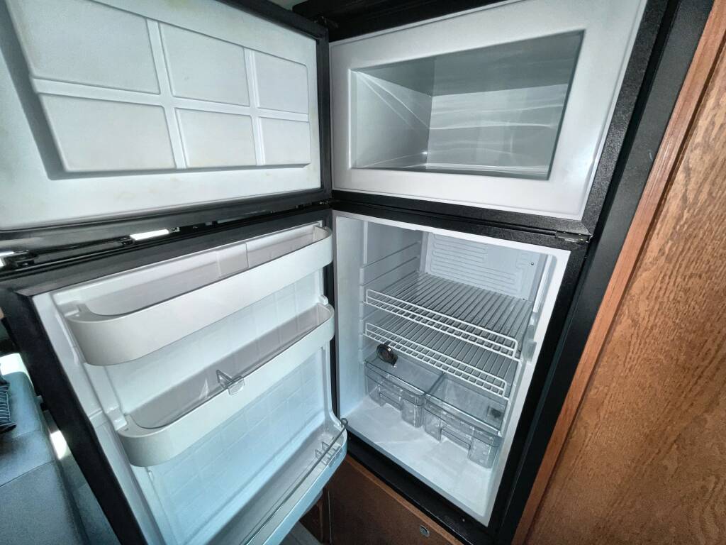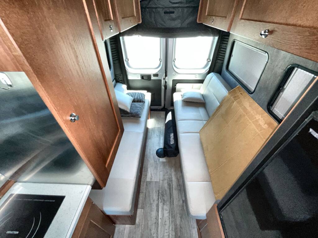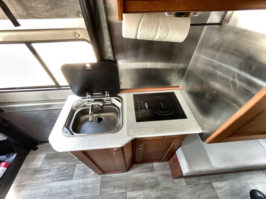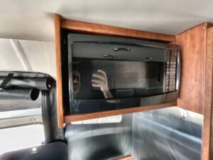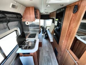 Kitchen: Mid-Van Galley – Microwave, Sink, Compact Refrigerator, Countertop